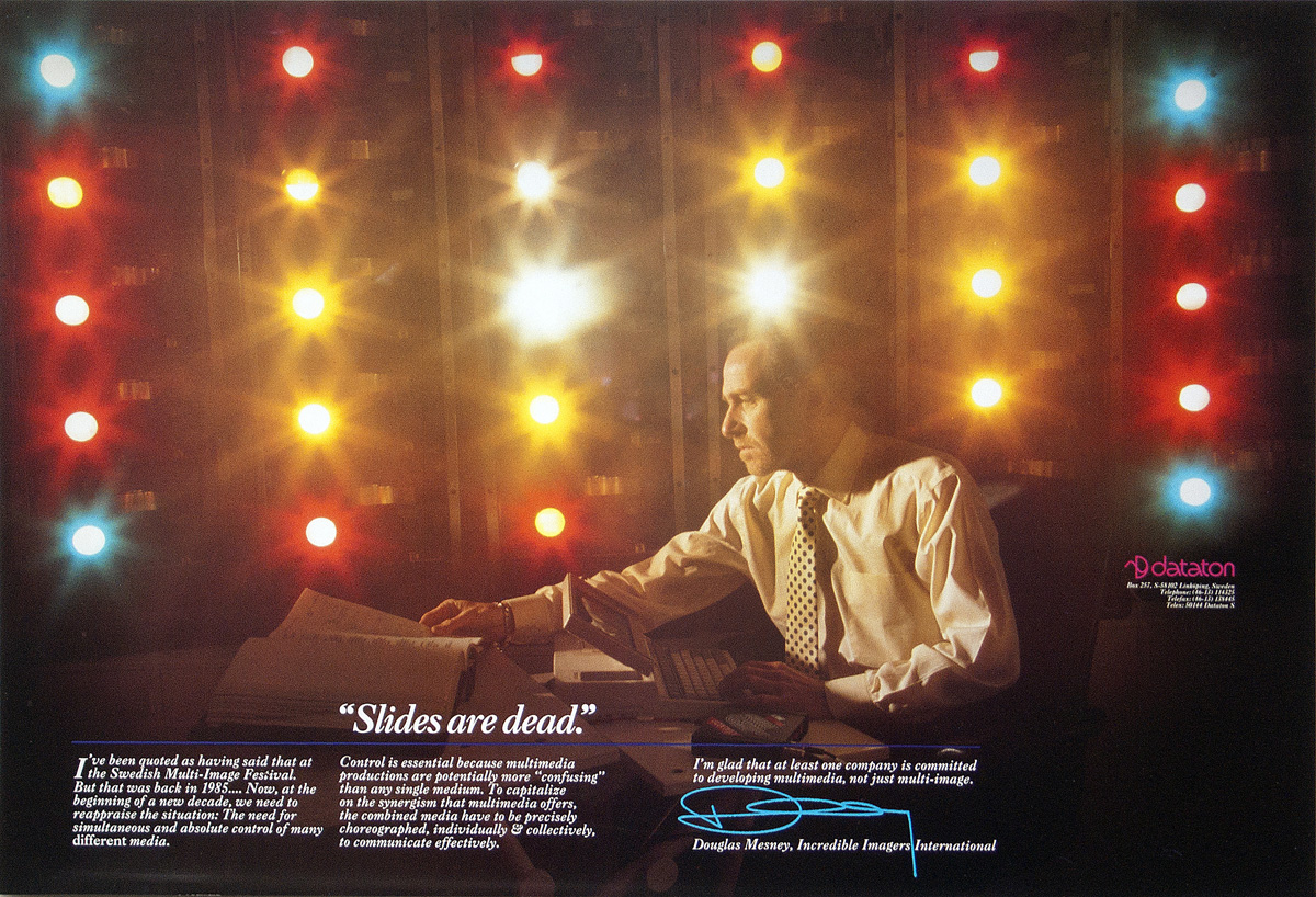 1989 - Douglas Mesney featured in Datron 'Slides Are Dead' adverstisement